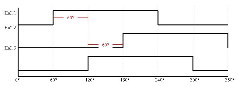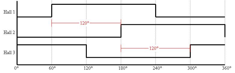 Може здатися очевидним, що 120 і 60 - це кут під яким встановлюються датчики Холла, та це насправді не так. У першому і другому випадку датчики встановлені відносно один до одного з кутом 120 градусів. Звісно, мова йде про електричні градуси.