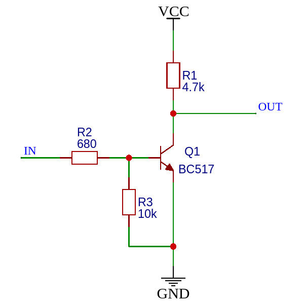 Інвертор цифрового сигналу можна зібрати на одному транзисторі. Наприклад, так: