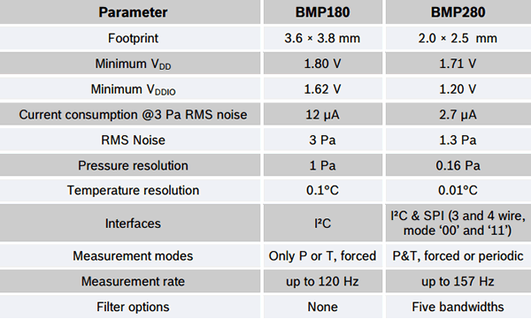 BMP085 та BMP180 дуже схожі між собою, навіть бібліотека від BMP085 підходить до BMP180. BMP280 на їх тлі - це досить помітний крок вперед.