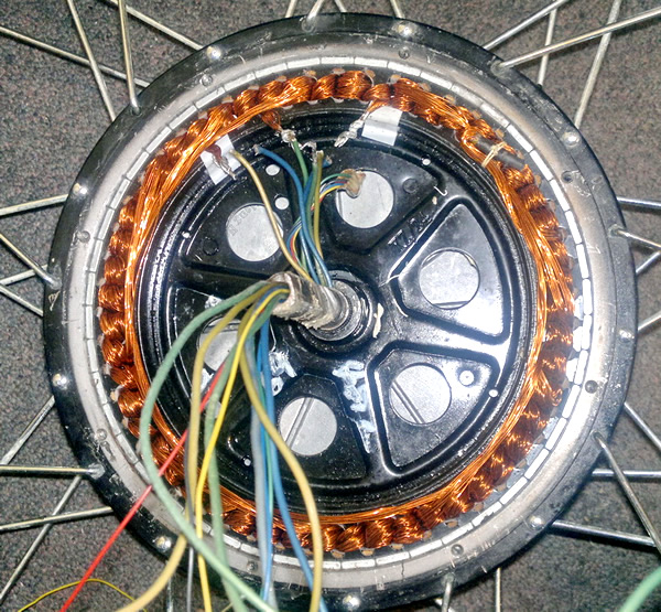 Бесколлекторный двигатель постоянного тока состоит из ротора с постоянными магнитами и статора с обмотками. Различают два типа двигателей: Inrunner, у которых магниты ротора находятся внутри статора с обмотками, и Outrunner, у которых магниты расположены снаружи и вращаются вокруг неподвижного статора с обмотками.Схему Inrunner обычно применяют для высокооборотистых двигателей с небольшим количеством полюсов. Outrunner при необходимости получить высокомоментный двигатель со сравнительно небольшими оборотами. Конструктивно Inrunners проще из за того, что неподвижный статор может служить корпусом. К нему могут быть смонтированы крепежные приспособления. В случае Outrunners вращается вся внешняя часть. Крепеж двигателя осуществляется за неподвижную ось либо детали статора. В случае мотор-колеса крепление осуществляется за неподвижную ось статора, провода заводятся к статору через полую ось.