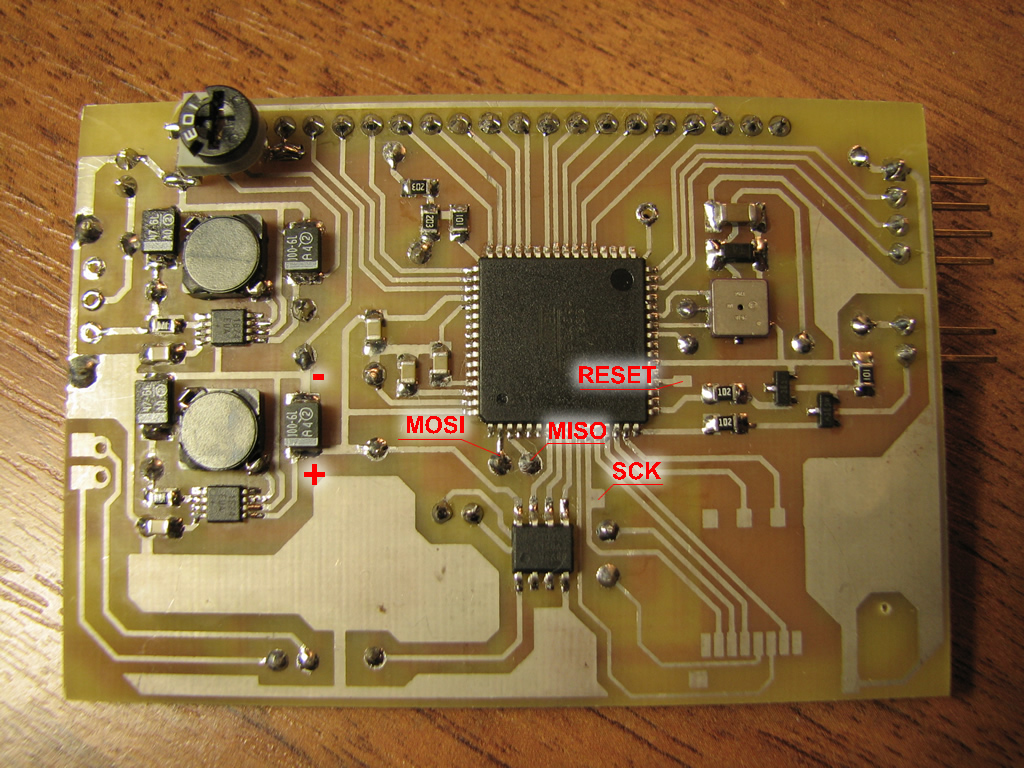 Прошивка микроконтролера возможна в готовом изделии. Для этого придется подпаяться "паучком" к указанным контактам.