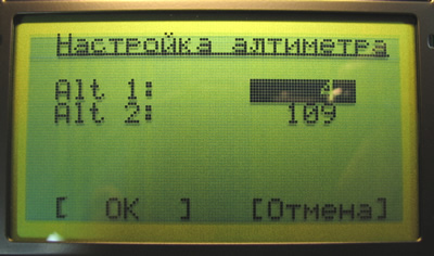 Не обязательно устанавливать показания альтиметров, используя меню. Это можно сделать пока таймер полета не запущен.