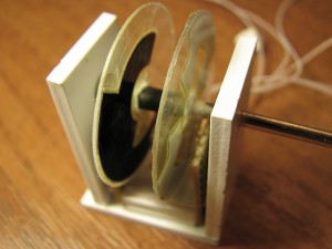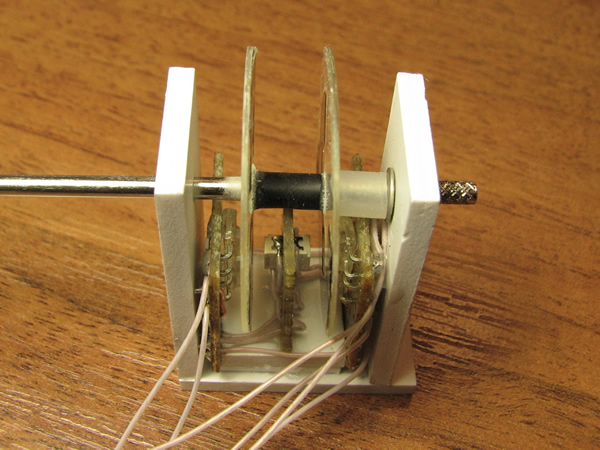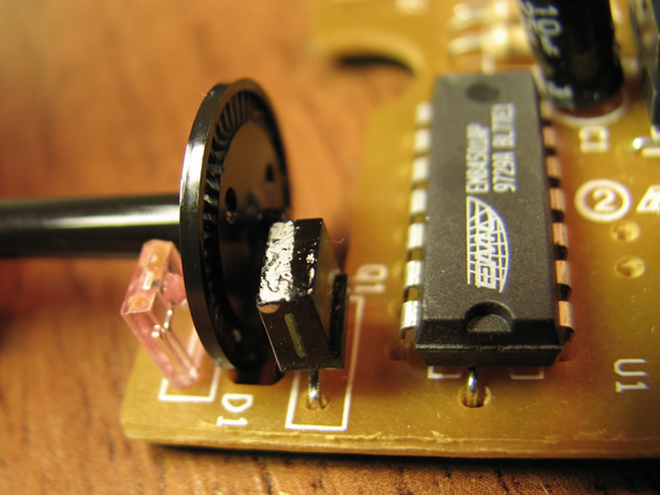 Между дисками установлена двусторонняя плата со светодиодами, за дисками фототранзисторы. Таким образом были уменьшены габариты.