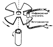 С помощью одного светодиода и одного фототранзистора можно измерять скорость вращения или перемещение без учета направления вращения. Такой датчик сложно назвать энкодером, так как, при реверсе нет возможности точно определить положение или направление вращения. Это просто датчик скорости вращения.