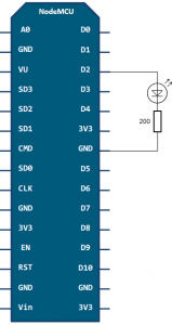 NodeMCU дозволяє використати одночасно не більше 6 PWM виходів на пінах від 1 до 12. Частота PWM може бути від 1 до 1000 Гц. Шпаруватість задається 10 бітним числом, тобто від 0 до 1023.
