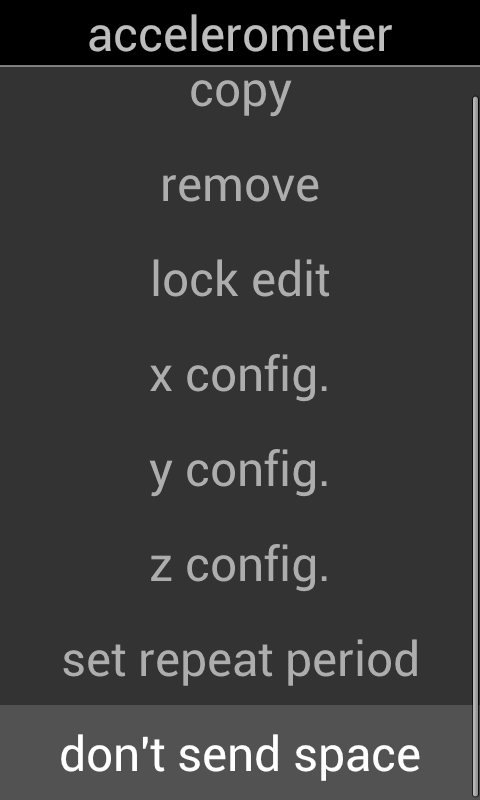 У мобільних гаджетах є акселерометр, який зазвичай використовується для визначення кута нахилу мобільного телефону або планшета. Ми можемо використати акселерометр для керування сервоприводом. Тобто, будемо керувати сервою нахиляючи мобільний телефон. У програмі RoboRemoFree робимо новий інтерфейс і встановлюємо на нього акселерометр: