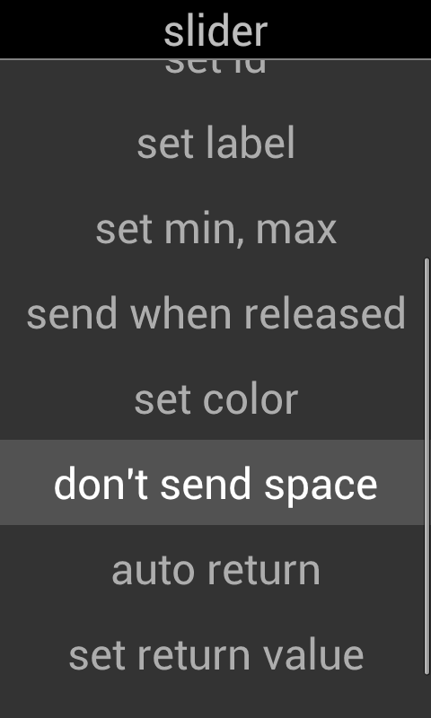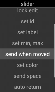 Для того, щоб дані відправлялися під час пересування слайдера, виконуємо пункт меню "send when moved". Інакше, якщо залишити "send when released", данні будуть відправлятися тільки коли ви відпустите слайдер.