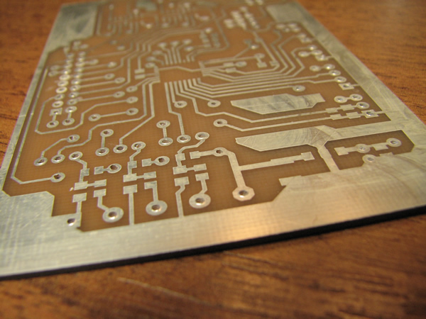 Плату очистить и обезжирить. Погрузить плату в раствор жидкого олова на 15-30 минут при комнатной температуре. После чего изделие промыть проточной водой. Рекомендуется использовать полиэтиленовую посуду. Я использую пластмассовую кювету. Согласно надписи на банке, при выдержке 15-30 минут получится слой в 1 мкм. Один литр раствора способен покрыть оловом указанной толщины до 1/2 квадратного метра медной поверхности (50 дм. кв. ). Раствор можно использовать многократно до полного его истощения.Впечатления