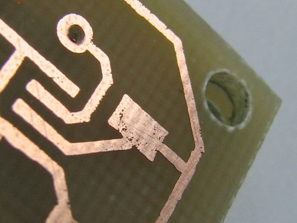 При применении ЛУТ край дорожки получается рваным, а на поверхности могут быть раковины. Это обусловлено пористой структурой тонера, вследствие чего травящий раствор все же проникает к закрытым тонером зонам. Меня это не устраивает, поэтому перешел на фоторезистивную технологию.