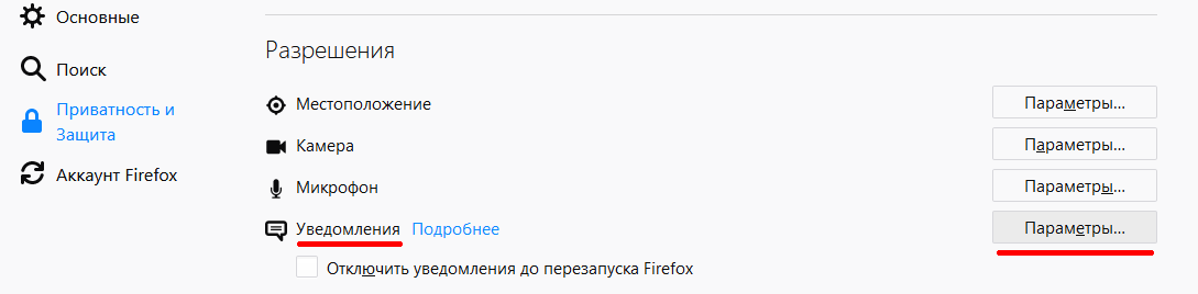 В браузере в настройках ищем "Уведомления".