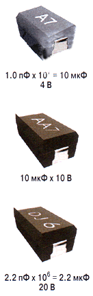О маркировке алюминиевых электролитических SMD конденсаторов для поверхностного монтажа в корпусах типа "боченок" читайте в отдельной статье: "Маркировка алюминиевых электролитических SMD конденсаторов для поверхностного монтажа"