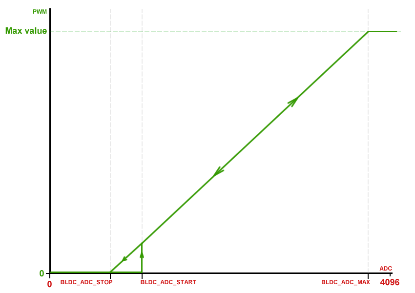BLDC_ADC_MAX - максимальний поріг ADC. Всі значення вище цього порога задають максимальні оберти.