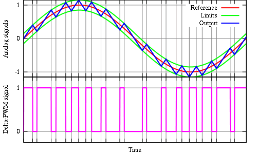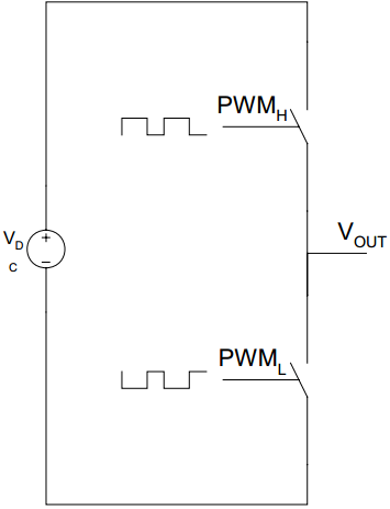 Для генерації певного рівня напруги використовується ШІМ (PWM). Залежно від шпаруватості ШІМ можна керувати середньою напругою Vout. Але форма сигналу Vout буде повторювати сигнал ШІМ, тобто буде прямокутною як ШІМ сигнал, а не гладкою. Якщо цю напругу подати на низькочастотний фільтр, то на виході фільтра буде напруга пропорційна коефіцієнту заповнення ШІМ верхнього ключа. Керуючи шпаруватістю ШІМ можна отримати довільну форму напруги на виході, в тому числі і необхідну напругу синусоїдальної форми.