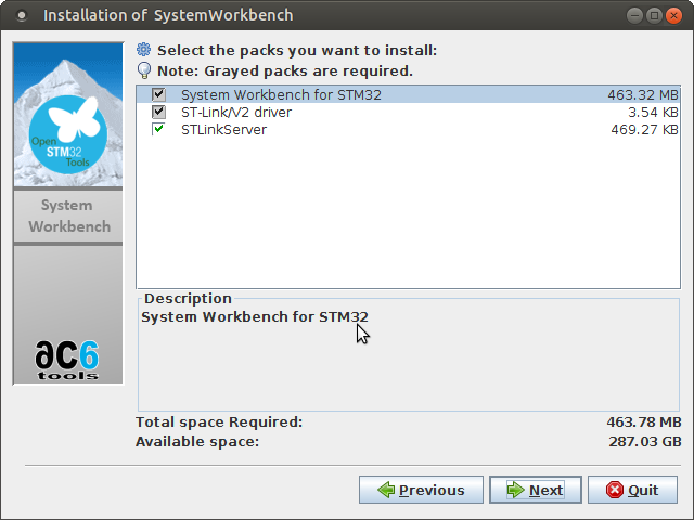 1. Заходимо на сайт http://www.openstm32.org, реєструємося. Після чого на e-mail приходить посилання для підтвердження реєстрації. Підтверджуємо, заходимо на сайт зі своїм логіном і паролем.2. Знаходимо файл install_sw4stm32_linux_64bits-latest.run і завантажимо його. Для 32-бітних ОС потрібен install_sw4stm32_linux_32bits-latest.run 3. Поки файл завантажується, встановимо потрібні пакети: