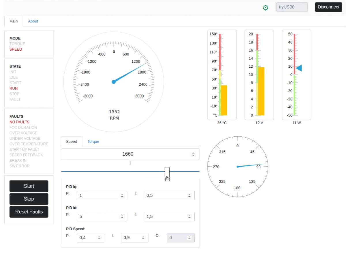 U-FOC PC Monitor - програма для керування платами - контролерів безколекторних двигунів U-FOC Board. Програма працює на комп'ютерах під управлінням операційних систем Ubuntu, Windows.