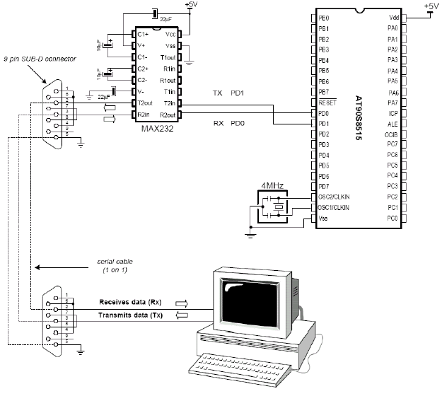 Подключение микроконтроллера к последовательному порту (RS-232) используя MAX232
